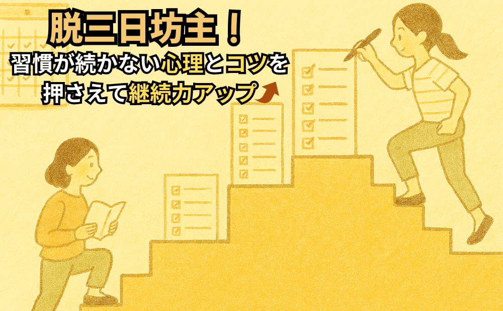 この記事では、心理や仕組みの面から原因を解説し、三日坊主を脱出する具体的な解決法やモチベーションの保ち方までわかりやすく紹介します。